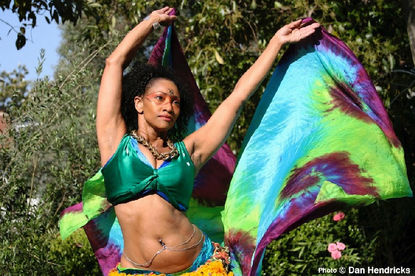 As an Afro-Arabian belly dancer for hire, who also dabbles as a belly dance photographer, Dangeruz has performed for audiences from West Hollywood to Egypt! She keeps the crowd engaged and having fun! She enhances her performance with finger cymbals and veils and has been known to pull out a Ukulele from time to time.